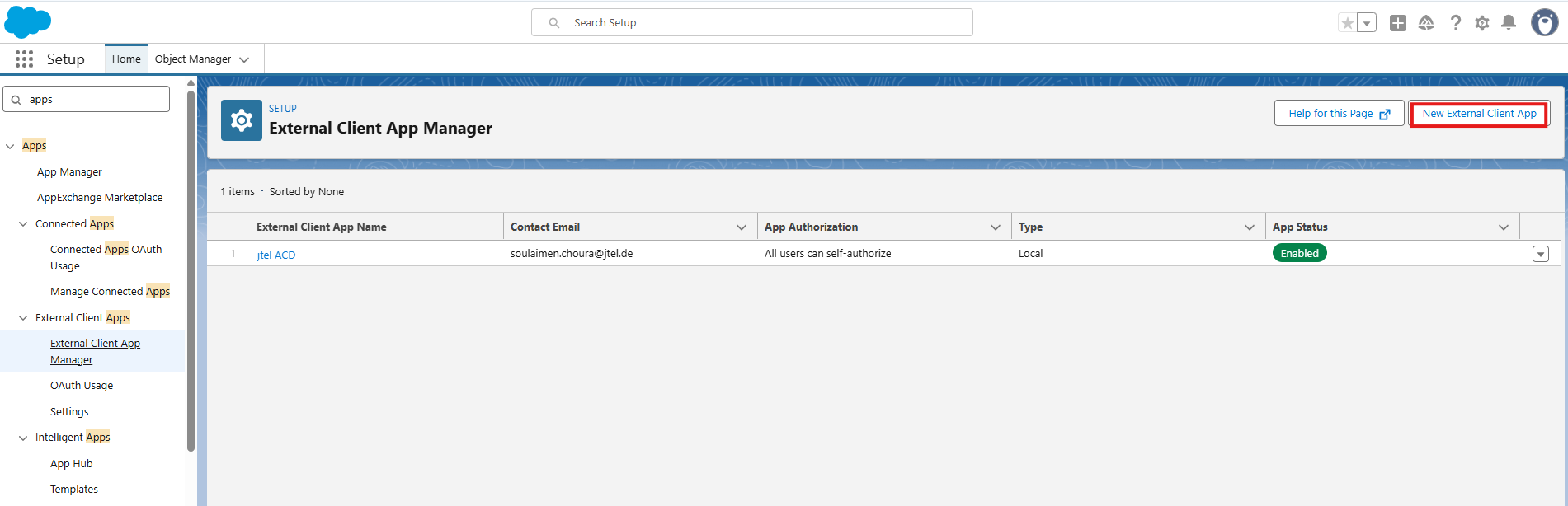 Search Setup → External Client App Manager