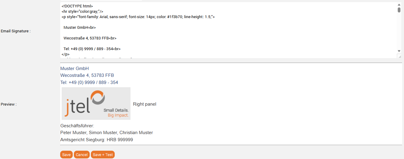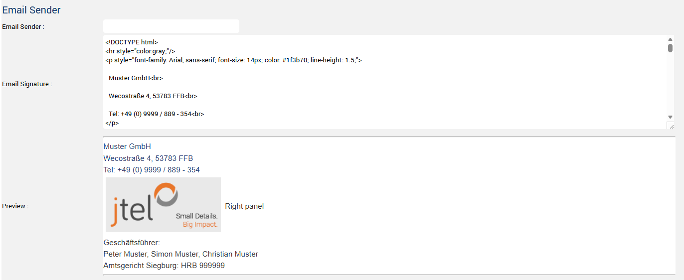 After release 3.44 its possible to configure signatures. You can configure a signature individually per inbox, or configure a signature for each client in the client master data.